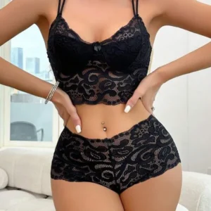 4pcs Lace Mesh Ruffle Bralette & Garter Set