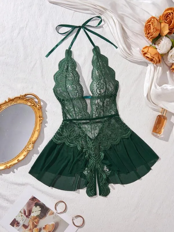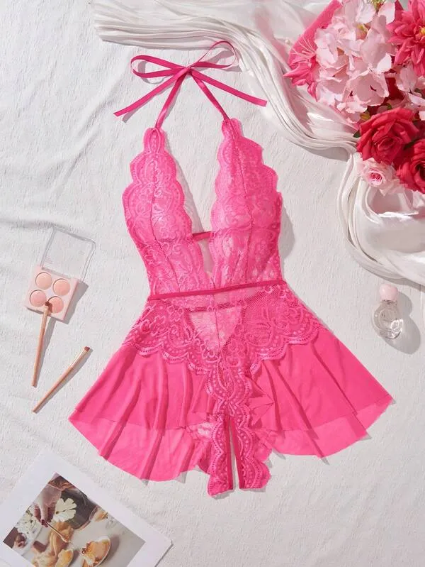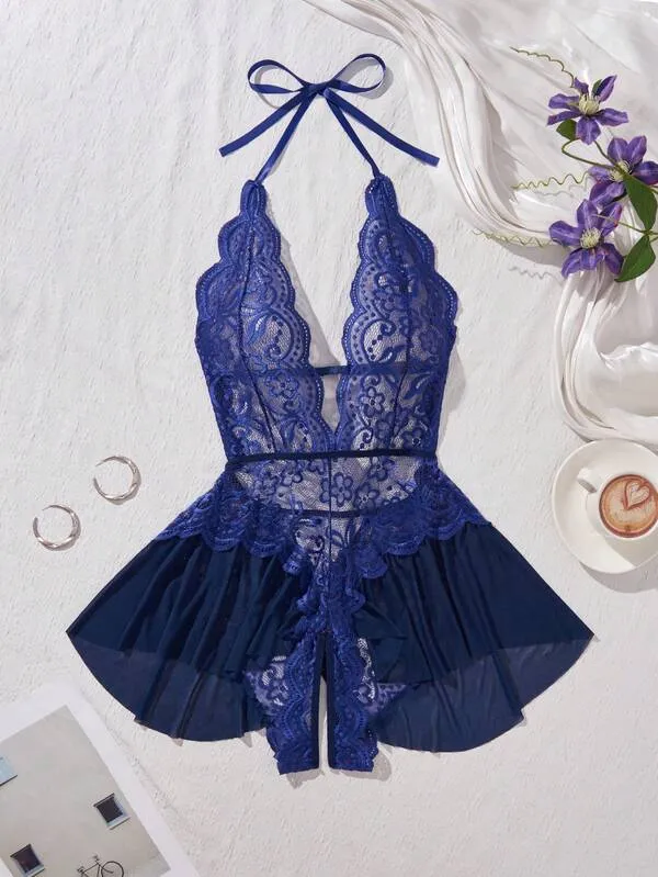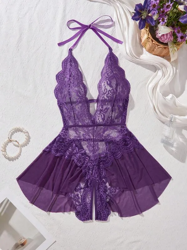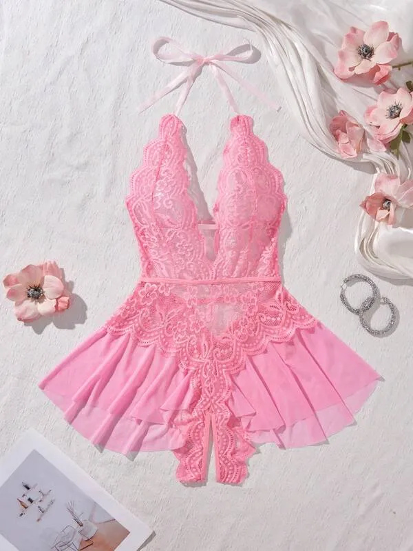 Every stitch of this bodysuit reflects premium craftsmanship. Its soft, stretchable fabric hugs your curves gracefully, ensuring comfort and breathability throughout wear. The delicate lace detailing and open-crotch design make it an irresistible piece in your wardrobe—ideal for those who love to blend passion with elegance.